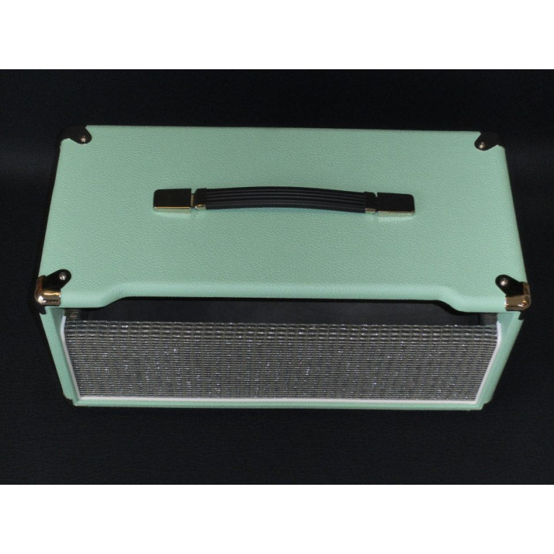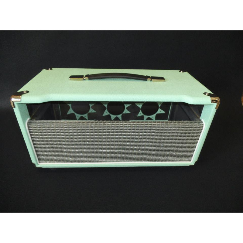 New head cabinet for Ceriatone OTS or similar series amplifiers,the dimensions are approx. 20 3/4 x 10 x 10. Available with any color tolex/cloth/piping ,corners are an option. All of our OTS series cabinets have the top front relief cutout's. And oval rear backs. The last pic of the Seafoam green head cab is the style 2 that we can build as well ( if you prefer them without the bar across the front).